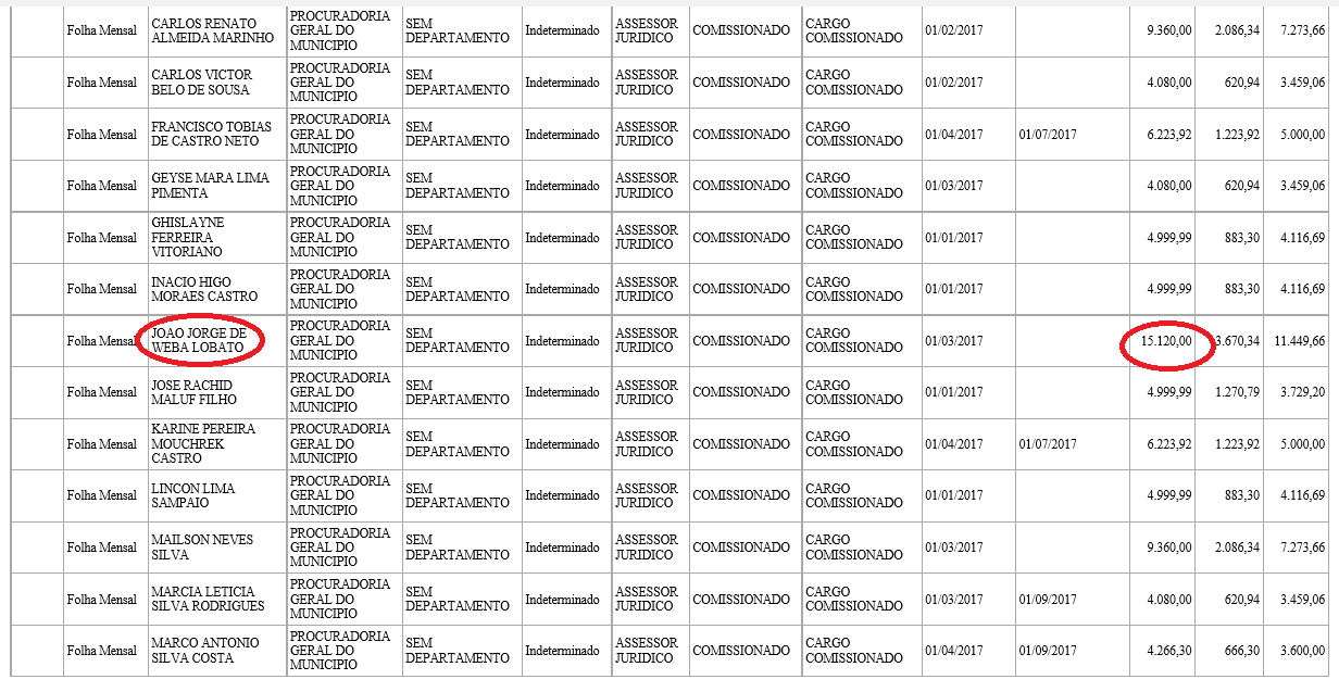 Lobato aparece na lista com salário acima de 15 mil reais como procurador do município. O fato curioso é que o ex-prefeito de Santa Helena, nunca foi visto na prefeitura e muito menos prestando algum tipo de assessoria jurídica.