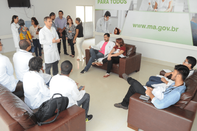 Em seguida, a comitiva foi recebida por quatro diretoras de hospitais em Pinheiro, que declararam total disponibilidade dos hospitais em contar com os serviços dos discentes do curso de Medicina em preceptorias. No Hospital Regional da Baixada Maranhense Dr. Jackson Lago, os estudantes já contam com aulas e orientações dos médicos. Para a diretora do Hospital de Alta Complexidade, Denise Boaes, os jovens ganharão boa experiência no local: “O Hospital está de portas abertas e temos amplo campo de prática com nossas 12 especialidades médicas, 122 leitos e quatro centros cirúrgicos”.