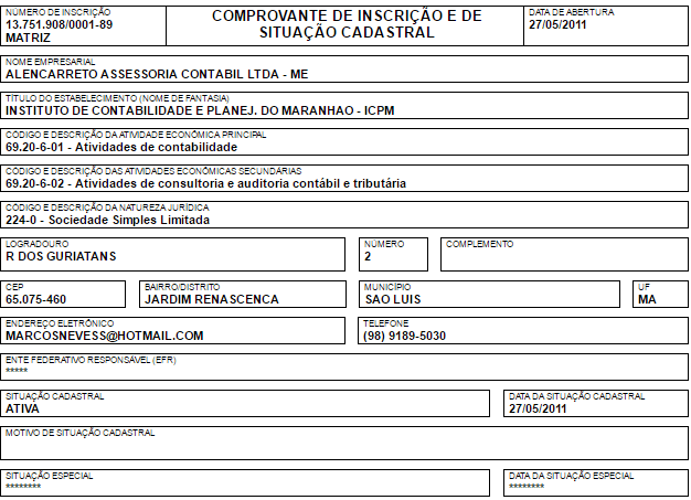 O contrato foi assinado no dia 26 de Janeiro, de acordo com informações do CNPJ da Empresa, ela tem sede na Rua dos Guriatans no Bairro Jardim Renascença em São Luís.