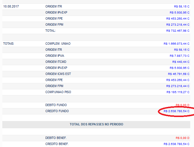 Os repasses foram feitos pelo Governo Federal através do Banco do Brasil. Qualquer cidadão pode acompanhar a entrada de recursos federais na prefeitura através do site do Banco do Brasil.