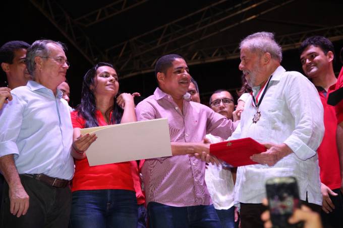 Durante o ato de encerramento da caravana ‘Lula pelo Brasil’, que aconteceu nesta terça-feira (05) em São Luís, o deputado Zé Inácio entregou ao ex-presidente Lula a Medalha do Mérito Legislativo “Manuel Beckman”, que homenageia personalidades que contribuíram para o desenvolvimento cultural, científico, econômico, artístico ou social do Maranhão e do Brasil. A medalha foi entregue diante de uma multidão que lotou a Praça Pedro II para ouvir o Lula