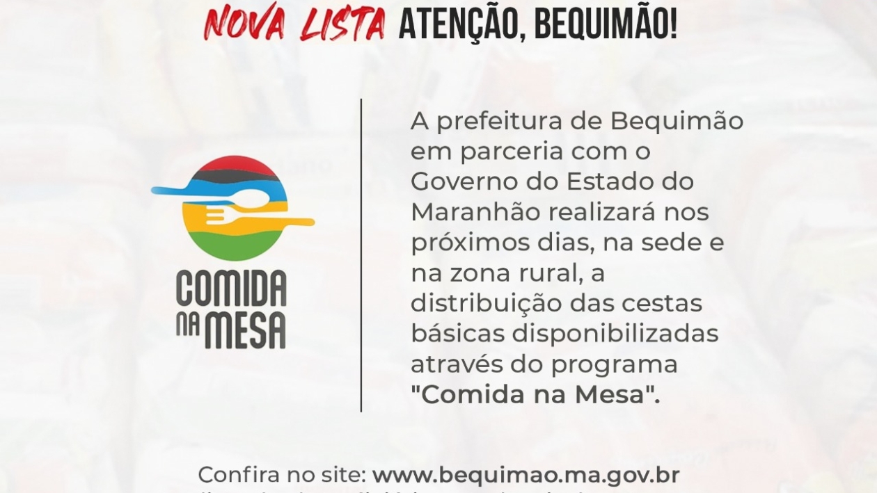 Prefeitura de Bequimão inicia distribuição de cestas básicas do Programa Comida na Mesa nesta quinta-feira (5)