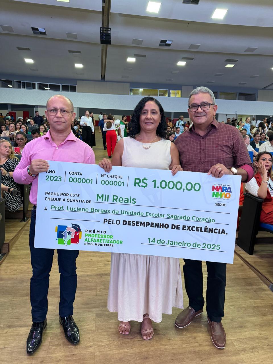 Essa foi a 1ª edição do prêmio, que foi instituído pelo governador Carlos Brandão por meio do decreto nº 39.143, de 10 de junho de 2024. Nessa primeira edição, foram premiados um professor em nível estadual, 20 professores em nível regional e 197 professores em nível municipal. A professora Luciene Borges, de Cururupu, da Unidade Escolar Sagrado Coração foi premiada e ganhou o prêmio professor alfabetizador e um cheque de R$ 1.000,00 (mil reais).