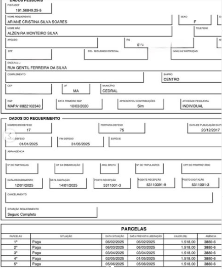 Sua filha, Ariane, também teria recebido o benefício em 2025, mesmo cursando odontologia e nunca tendo exercido a atividade de pesca. Ambas utilizaram autodeclarações falsas para obter o Registro Geral da Pesca (RGP), documento essencial para solicitar o benefício.